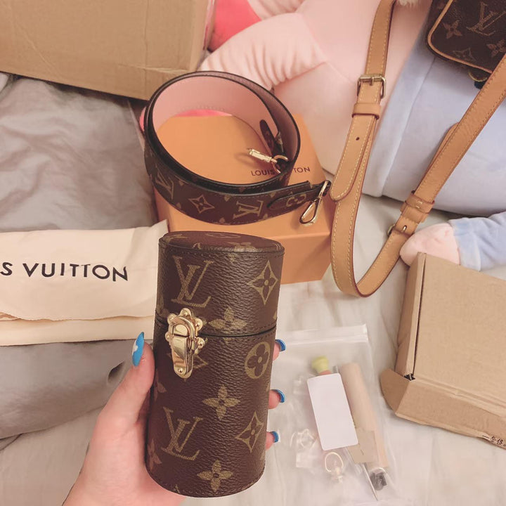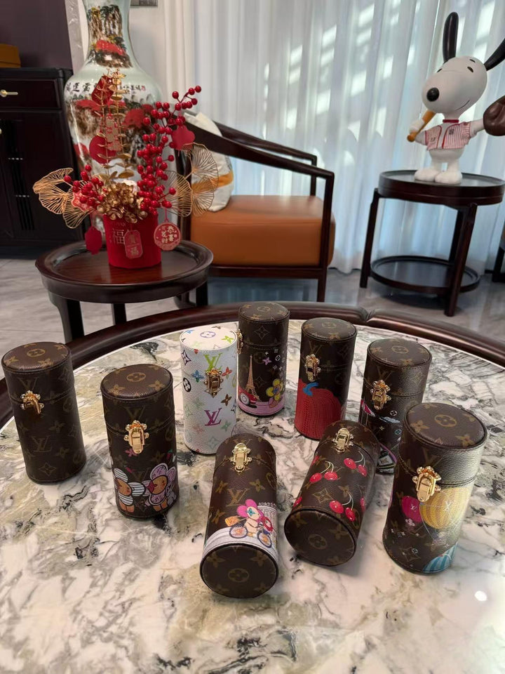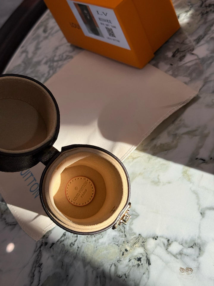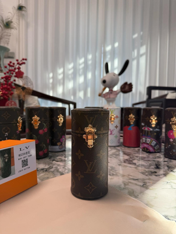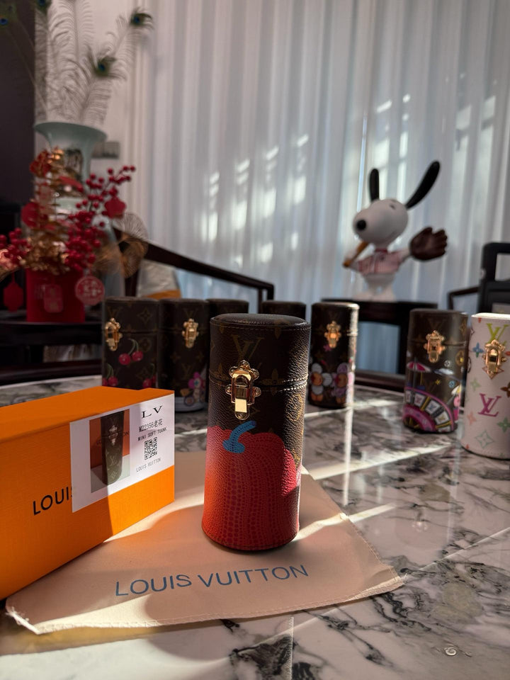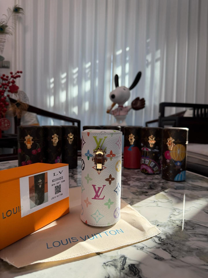 ?This scented travel bag is an elegant accessory custom-made for the collection. Its unique style is crafted from Monogram canvas infused with the Japanese artist's signature cherry color, adding a bold pop of color. A gold buckle secures the bag securely, allowing you to confidently embark on new adventures.