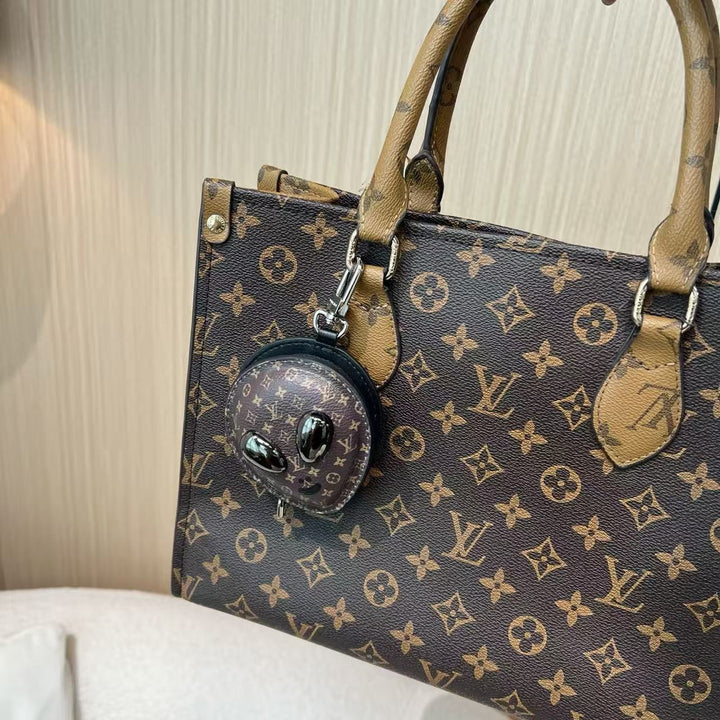 Made with top-quality materials and imported steel hardware, featuring the original logo. This alien-shaped bag can be used as a car accessory, pendant, or keychain—exquisitely crafted.