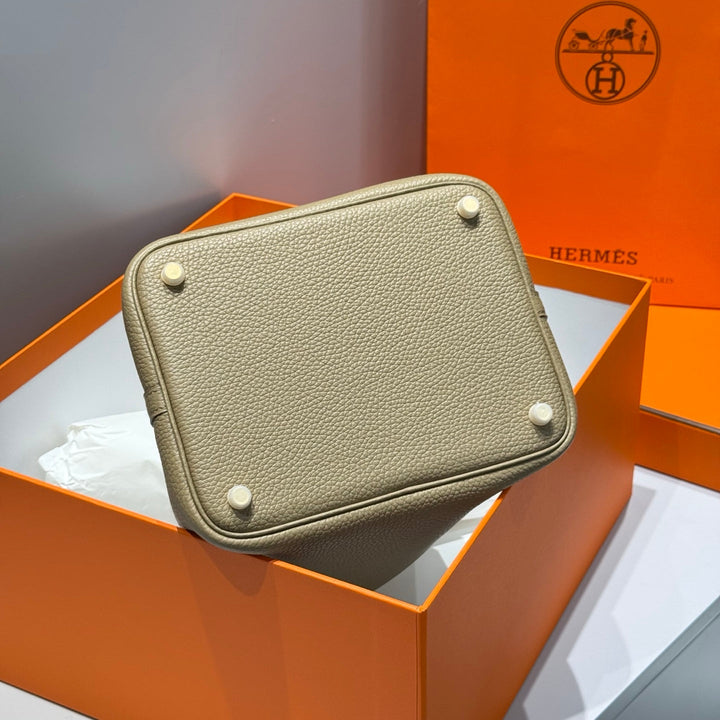 HERMES 25S PICOTIN LOCK 22 IN TAN BROWN CALFSKIN GOLD HARDWARE