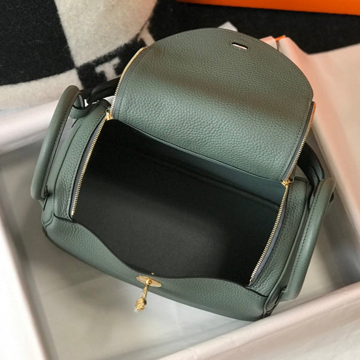 HM LINDY 30 BAG IN DARK GREEN CALFSKIN GOLD HARDWARE