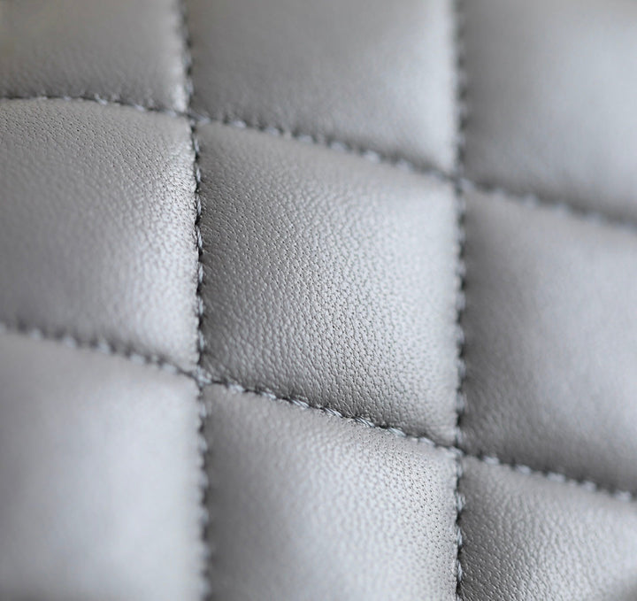- Color: Grey leather, Silver hardware