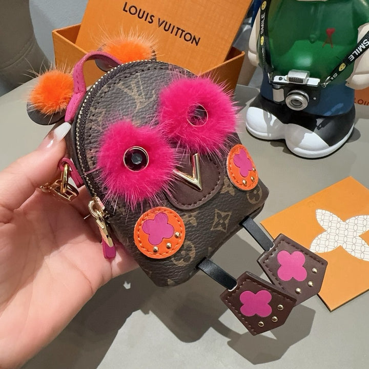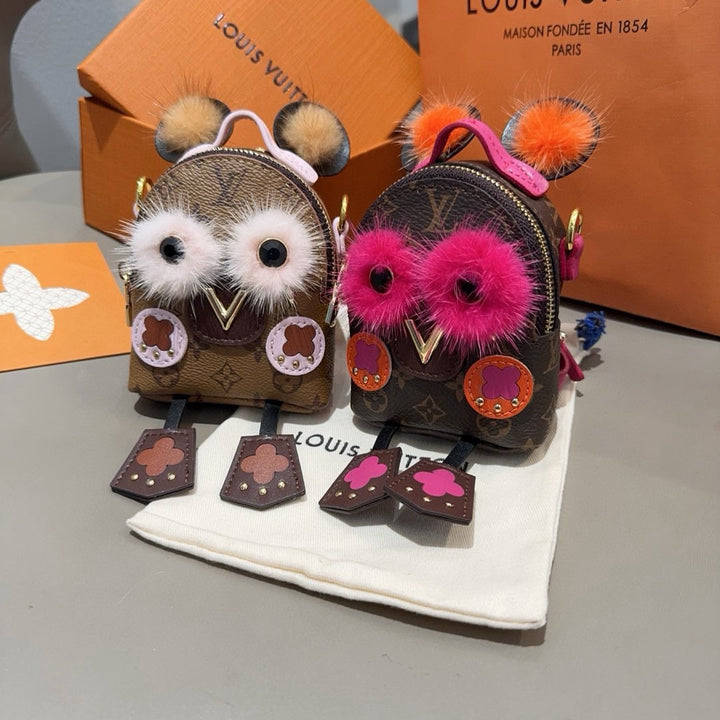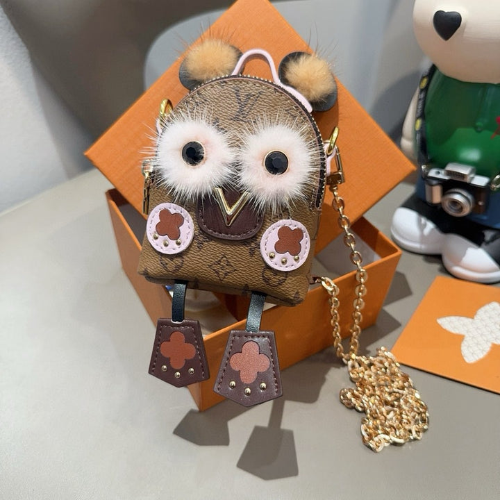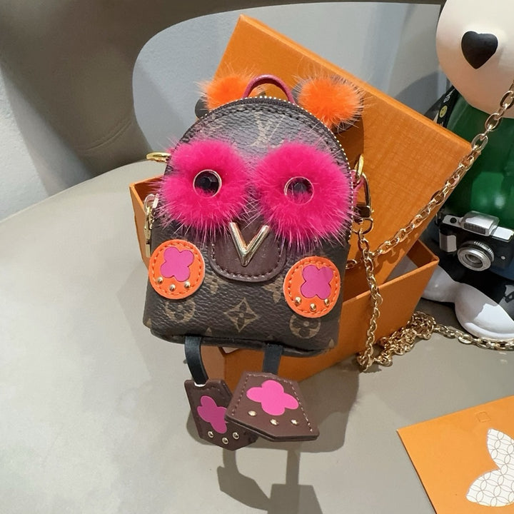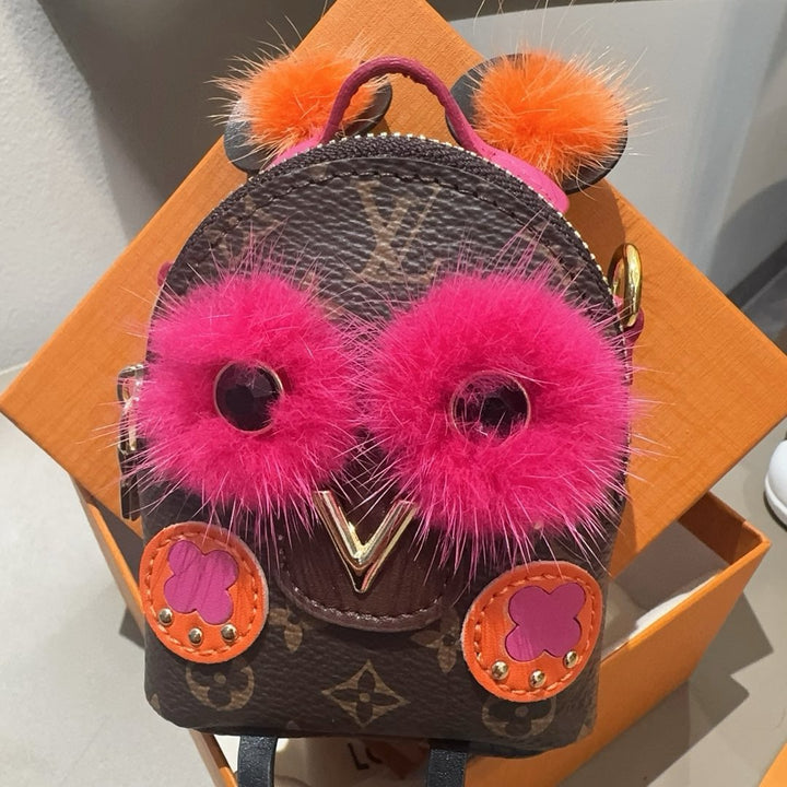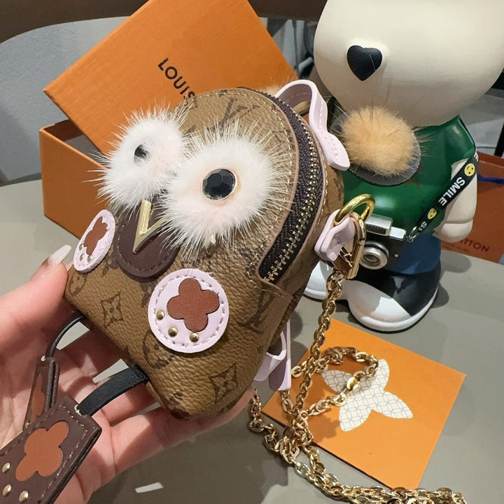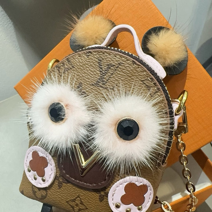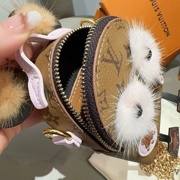 High-quality mink fur owl 🦉 keychain ♡ coin purse. Can be hung on a bag as a charm or tied to a belt. Comes with a chain for crossbody wear.