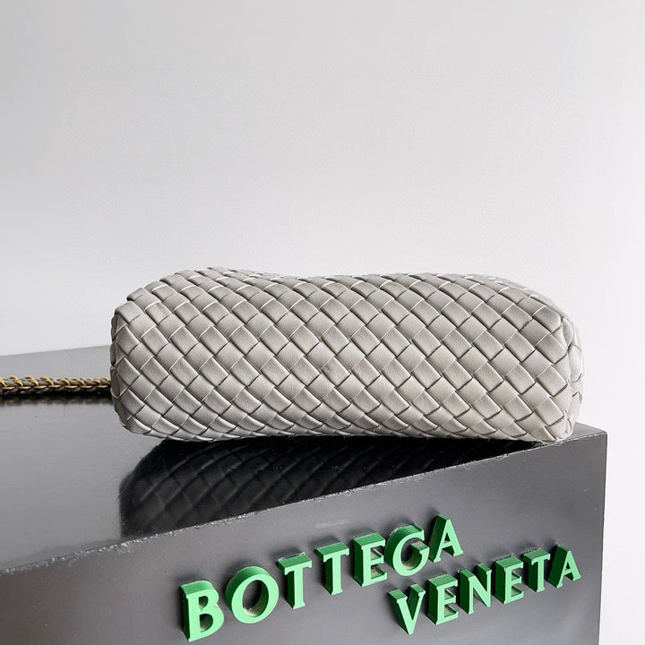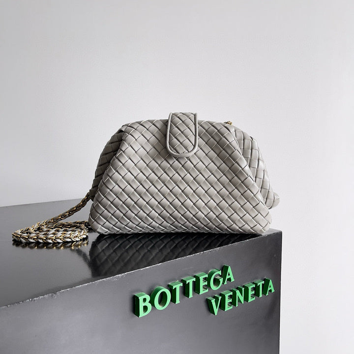 ?Padded Intrecciato leather teen clutch with leather braided metal chain