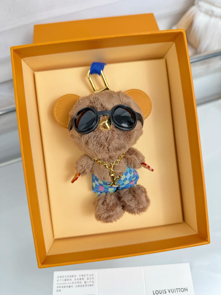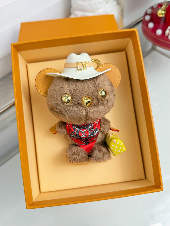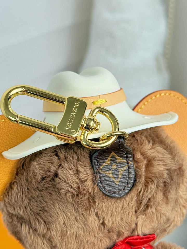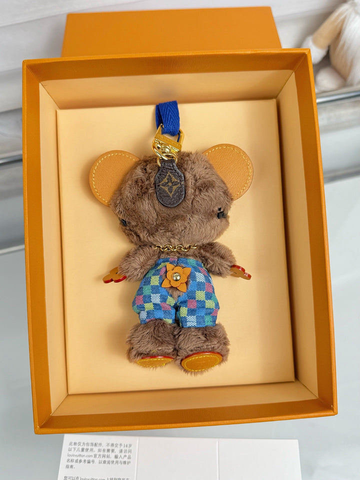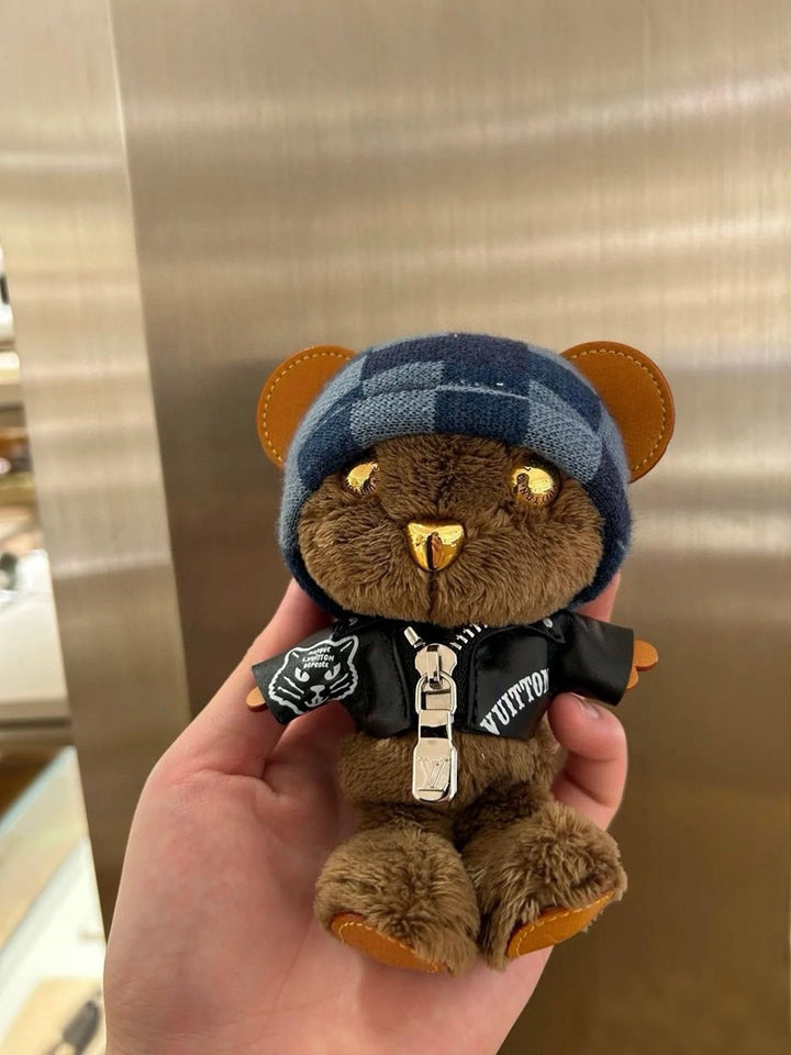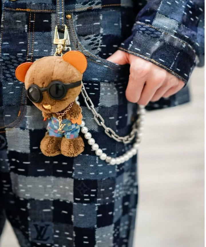 ?Louis Bear plush toy keychains and bag accessories feature unique plush doll designs that evoke baseball, rock, western, and surreal visual trends, showcasing the themes from Pharrell Williams' past shows. These accessories can add a touch of personality to your favorite bags or jeans.