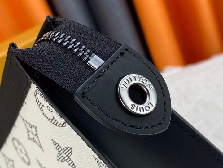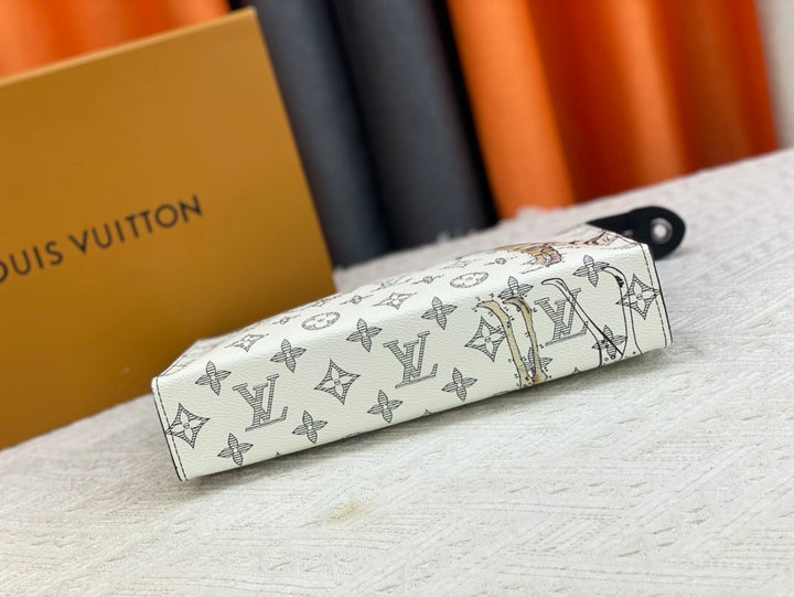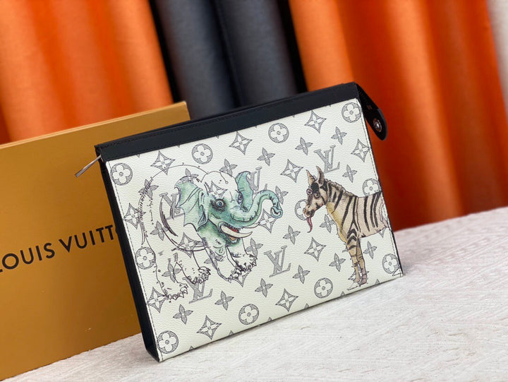 Elephant Zebra Toiletry Bag. Crafted from Monogram Titanium canvas featured in the Fall/Winter menswear fashion show, this elegant choice for tickets and receipts.