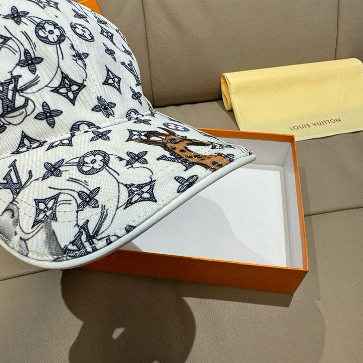 ?Comes with box and tote bag. Brand new original baseball cap, animal screen print, custom mold, original screen-printed satin fabric + top-grain cowhide, stylish and handsome, superior quality, random cut, basic head circumference 56, adjustable cap circumference.