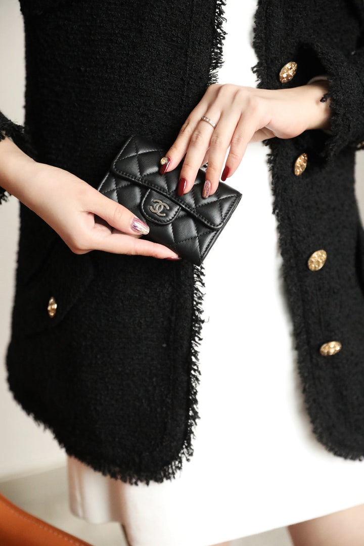 CC FLAP CARD HOLDER 11.3 BLACK CALFSKIN SILVER ICON