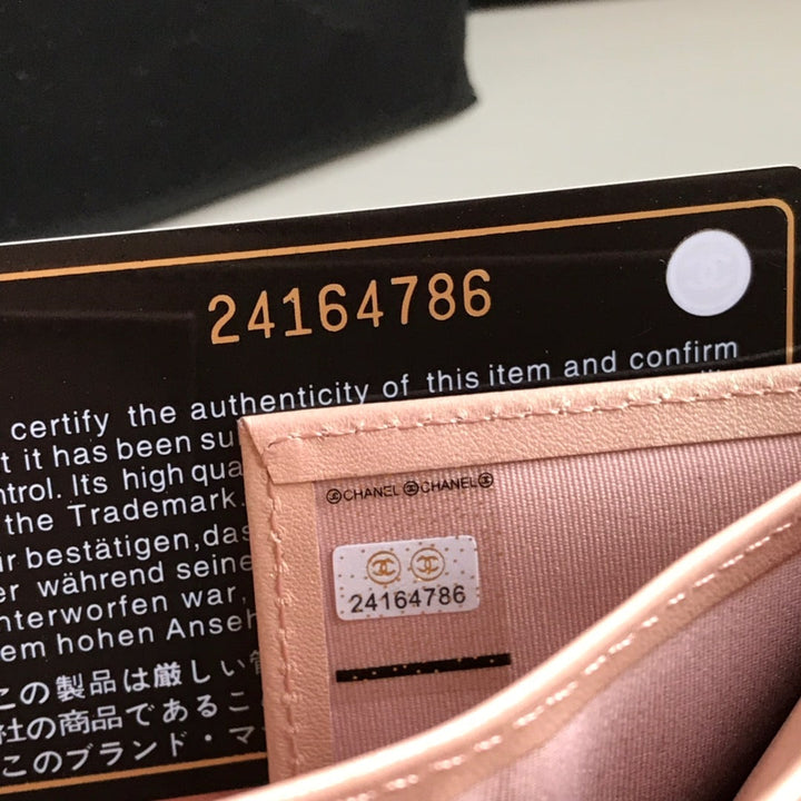 CC FLAP CARD HOLDER 11.5 PALE PINK GRAINED CALFSKIN GOLD ICON