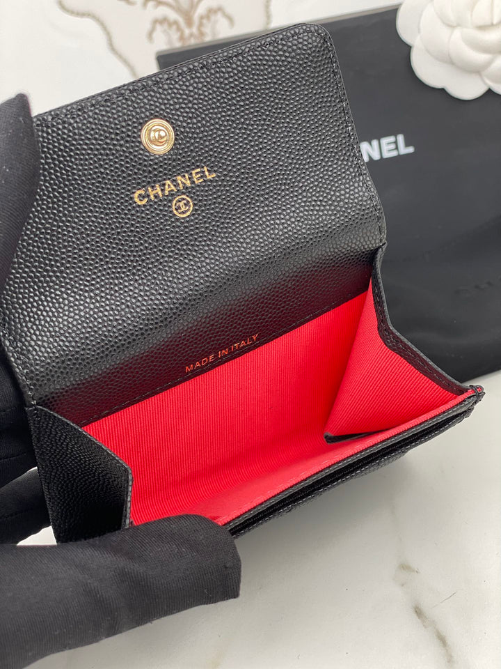 CC FLAP CARD HOLDER 11 BLACK GRAINED CALFSKIN GOLD ICON