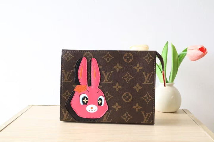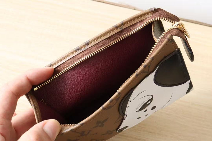?As part of an exclusive collaboration with Chinese artist Sun Yitian, each cosmetic bag features a calfskin patch depicting animals in her signature cartoon style.