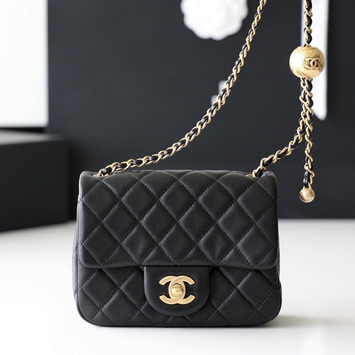 FLAP BAG 17CM GOLD HARDWARE BLACK LAMBSKIN