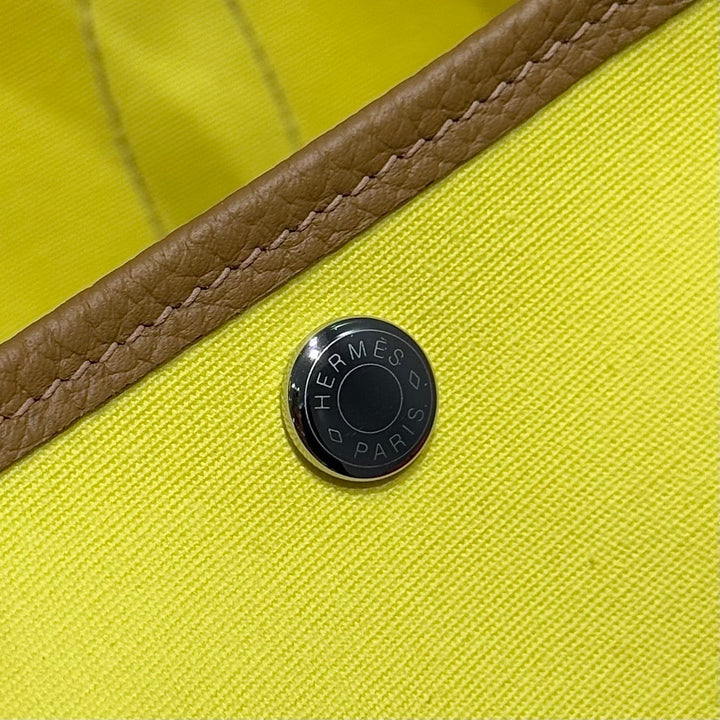 GARDEN PARTY 30CM IN YELLOW TOILETS COTTON CANVAS AND BEIGE MARFA CALFSKIN