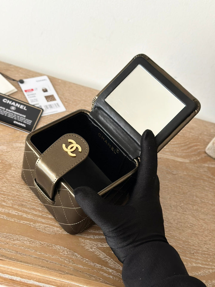 MINI VINTAGE COSMETIC BAG 11 IN MIKADO SHINY CALFSKIN GOLD HARDWARE