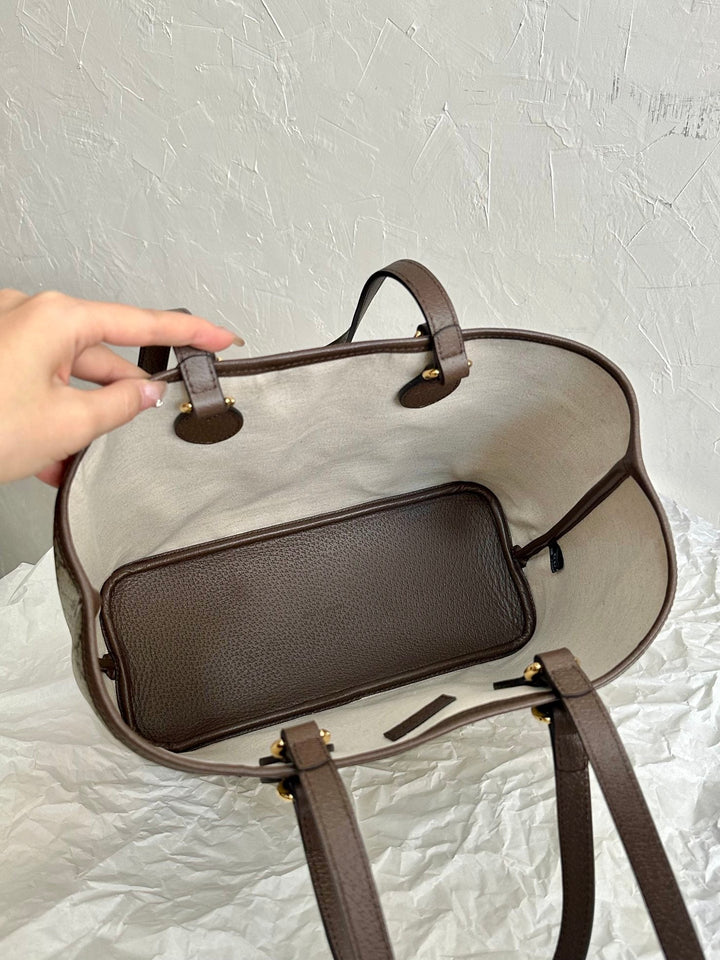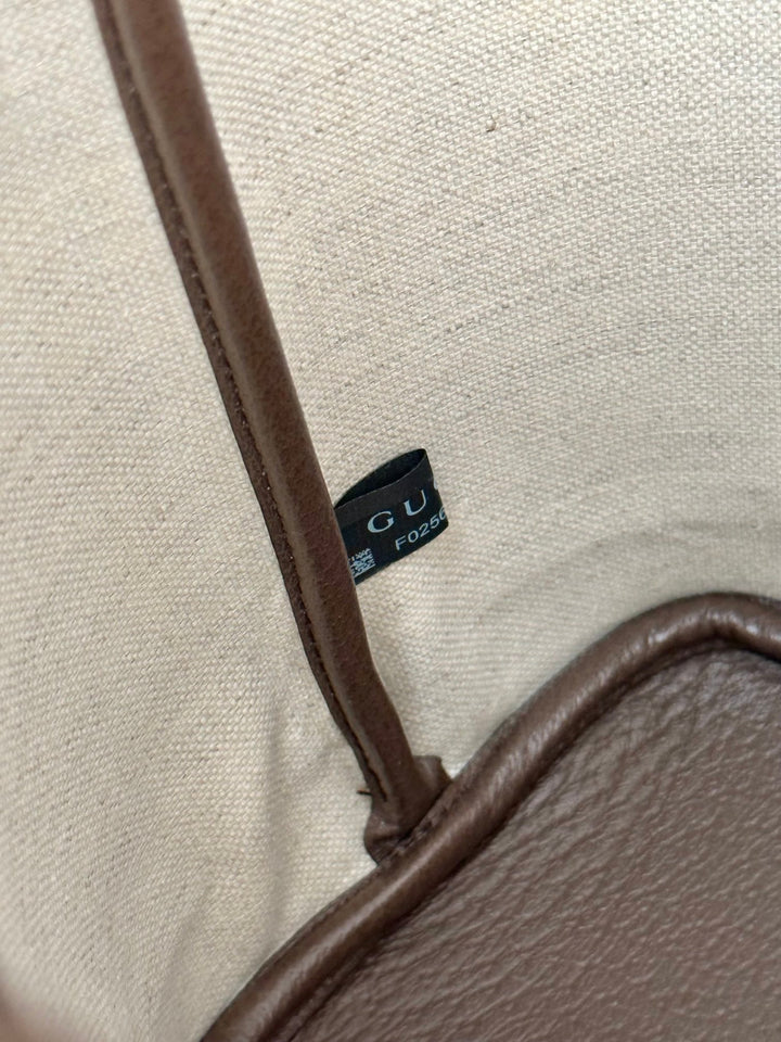 OPHIDIA SMALL TOTE BAG 31 BEIGE CANVAS AND BROWN CALFSKIN