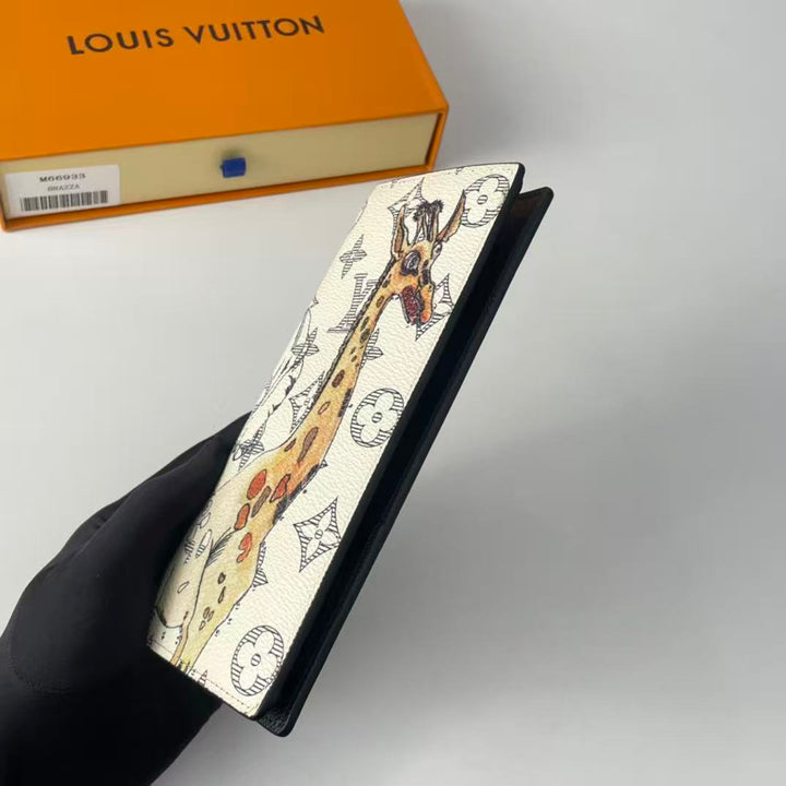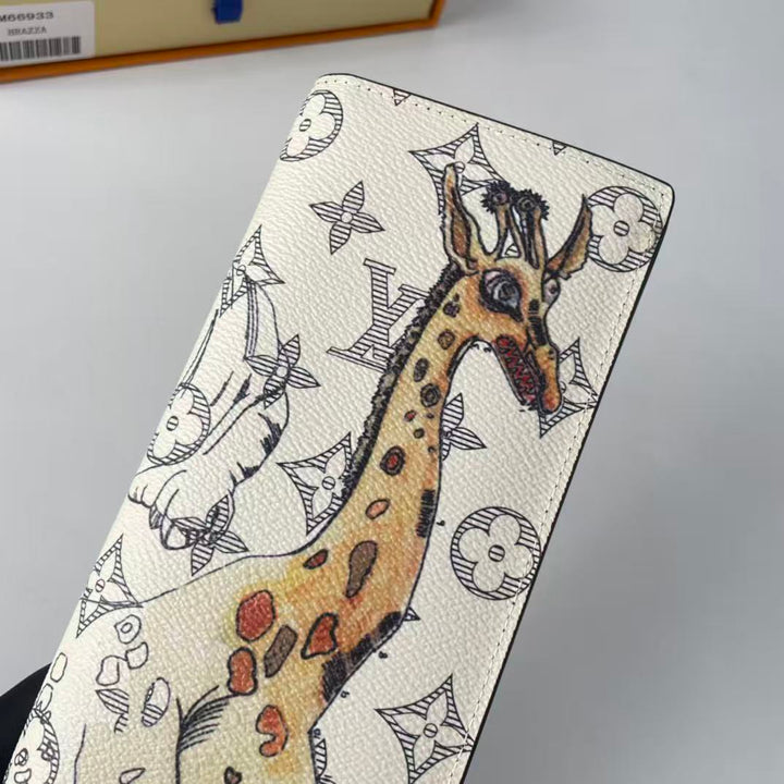 ?Authentic overseas original animal-themed suit wallet! Made of iconic Monogram canvas and adorned with a giraffe pattern drawn by a renowned artist, this Brazza wallet exudes a playful yet sophisticated charm. Its large size perfectly accommodates everyday essentials and neatly fits into any pocket.