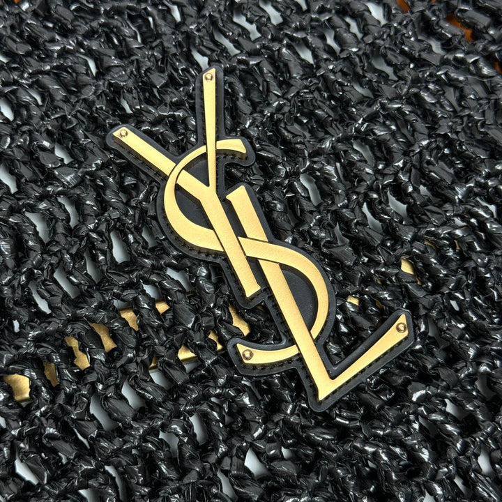 TOTE BAG 40 IN BLACK RAFFIA GOLD LOGO